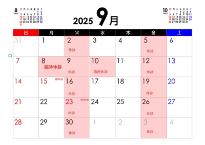 【追加あり】9/8(月)〜9/10(水)臨時休診のお知らせ