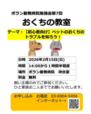 2月15日日曜日、おくちの教室を開催いたします。