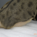 13歳のオスの猫ちゃん。ほっぺたの傷が治らないと来院されました。一ヶ月前他院にて喧嘩傷か?と抗生物質...