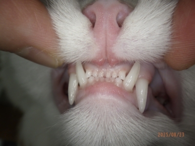 参考としてほぼ正常な猫の歯はこんな感じです。歯並びと歯の数、歯肉の腫れ方が違います。