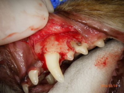 歯肉を切開すると骨がほとんどありませんでした