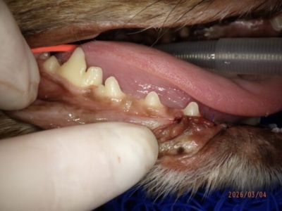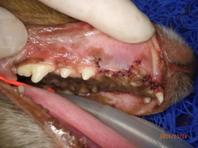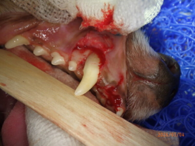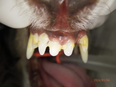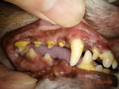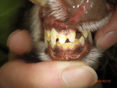 また上顎の切歯も1本抜けておりました。1本の歯だけが突然悪くなるというはずはなく、やはりこのワンちゃんは歯周病がそれなりに進行している可能性があります。