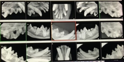 まず、全身麻酔をかけて歯科レントゲンを全ての歯で撮影します。