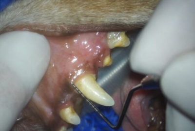 小型犬の健康な歯周ポケットは3mmまででしょうから、かなり深いポケットです。上顎犬歯は左右とも同様の深いポケットで鼻腔とつながっており基礎疾患と年齢から、残念ながら抜歯を選択しました。口腔鼻腔ろうはこのままですと、くしゃみや鼻水、食欲不振、最悪肺炎まで起こしかねません。